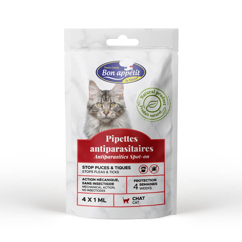Par exemple, pour un chat de 4 kg, donner 1 seringue de 2 ml chaque jour pendant 3 jours. Renouveler l’utilisation tous les 3 mois.